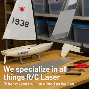 We specialize in all things R/C Laser, with other classes to follow as we grow. Our shop carries a strong stock of new and used hulls, sails, parts, and accessories. Used Lasers are sold à la carte—pick your hull, sails, electronics, and extras, then walk out the same day with exactly what you need.